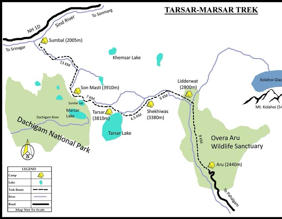 Trek Highlights 1. Scenic Drive from Srinagar Enjoy a picturesque drive through Anantnag and Kokernag, surrounded by lush valleys, forests, and the majestic Pir Panjal range.